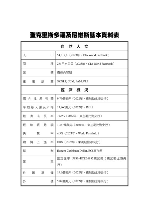 聖克里斯多福及尼維斯基本資料表
