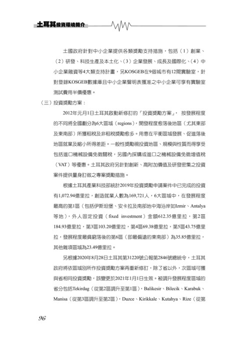 (VAT)等優惠。土耳其政府另針對創新、高附加價值及研發密集之投資