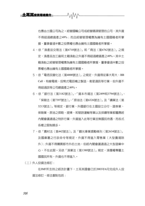 在IMF所支持之經改計畫下,土耳其國會已於2003年6月完成外人投