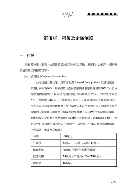 23%,並於當年4月22日公告實施。基本上,企業總部在土國的營利法人