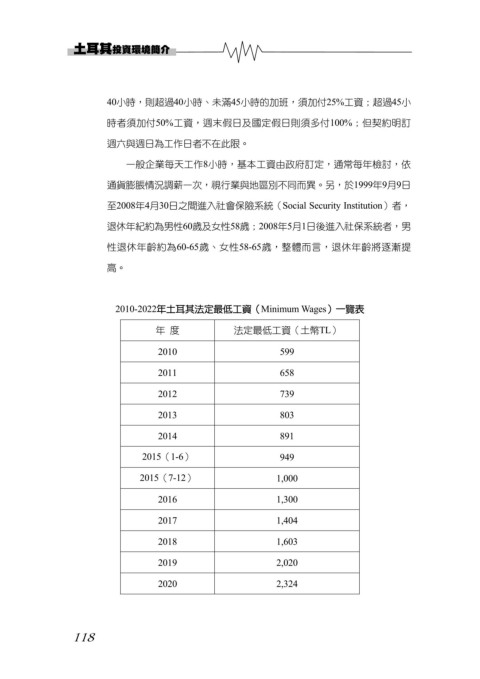 2010-2022年土耳其法定最低工資(Minimum Wages)一覽表