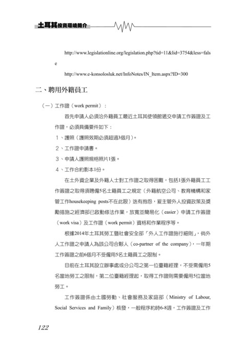 目前在土耳其設立辦事處或分公司之第一位臺籍經理,不受需僱用5