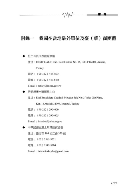附錄一 我國在當地駐外單位及臺(華)商團體