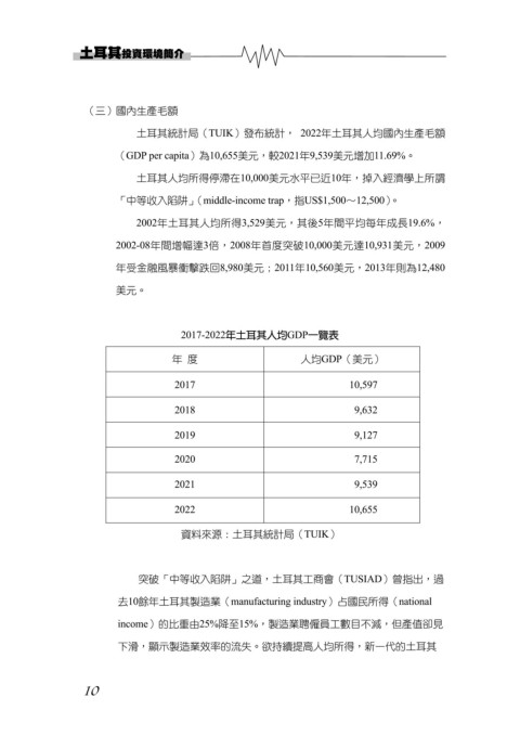 去10餘年土耳其製造業(manufacturing industry)占國民所得(national