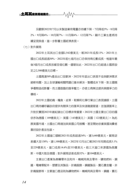 2022年土國進口額較2021年成長超過34%,達3,640億美元。貿易逆