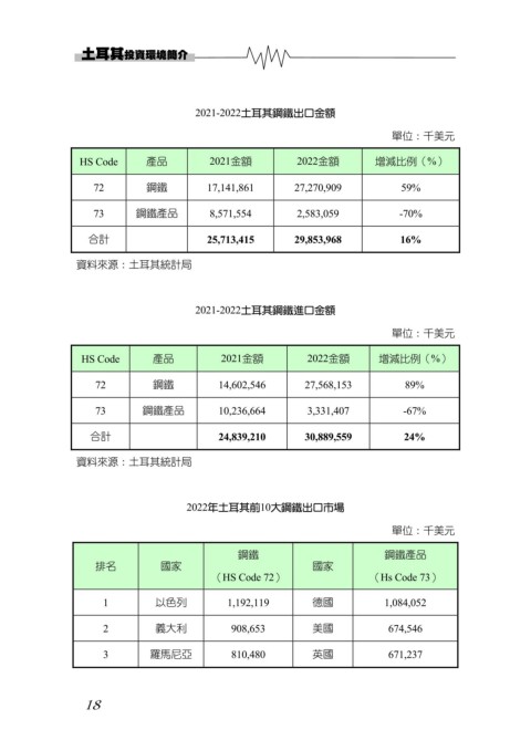 2021-2022土耳其鋼鐵出口金額