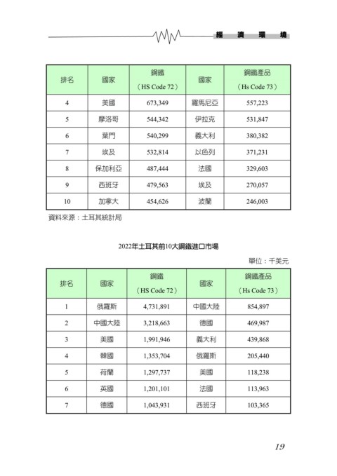 2022年土耳其前10大鋼鐵進口市場