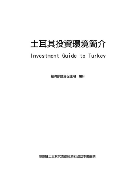 土耳其投資環境簡介 Investment Guide to Turkey 經濟部投資促進司 編印 感謝駐土耳其代表處經濟組協助本書編撰