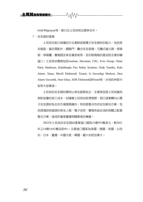 土耳其目前已具備自行生產較低階電子安全器材的能力,包括保