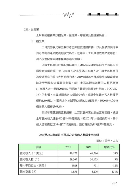 2021至2022年前往土耳其之遊客的人數與支出金額