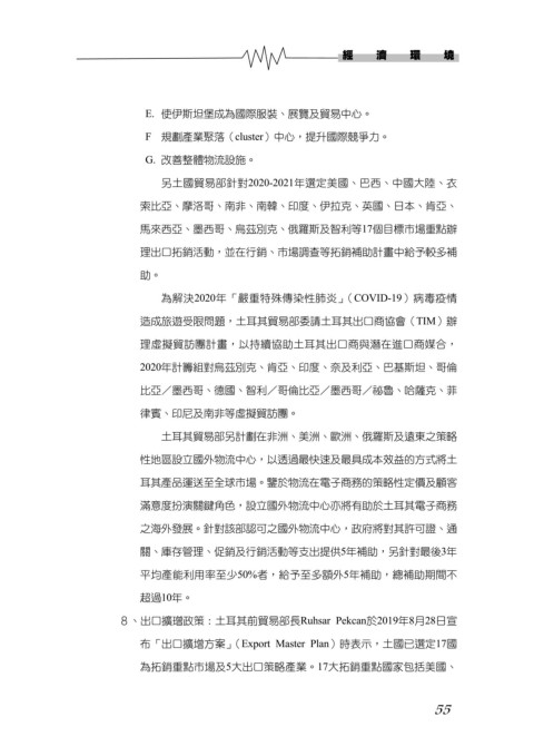 8、出口擴璔政策:土耳其前貿易部長Ruhsar Pekcan於2019年8月28日宣