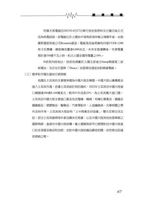 我國在土耳其的主要競爭國為中國大陸及韓國。中國大陸以廉價產品