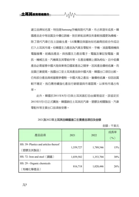 打入土耳其市場。但韓國主力產品為汽車及零配件、手機、液晶電視機與