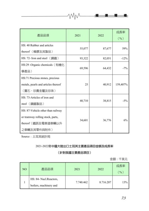 2021-2022年中國大陸出口土耳其主要產品項目金額及成長率