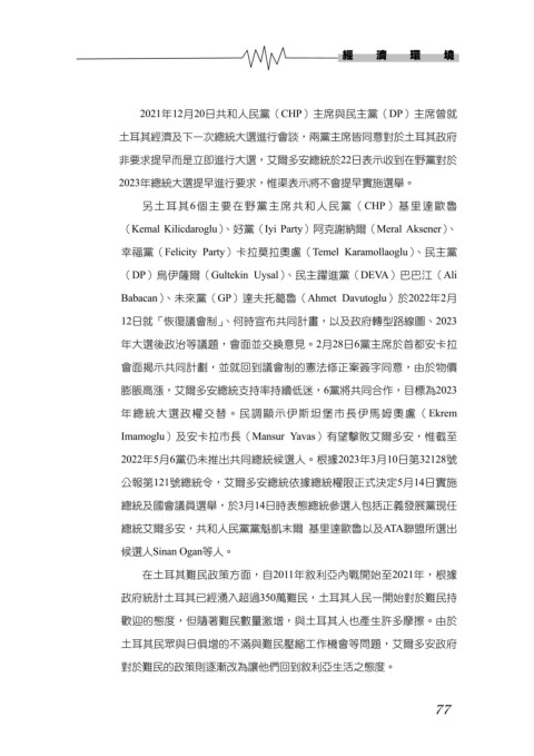 在土耳其難民政策方面,自2011年敘利亞內戰開始至2021年,根據