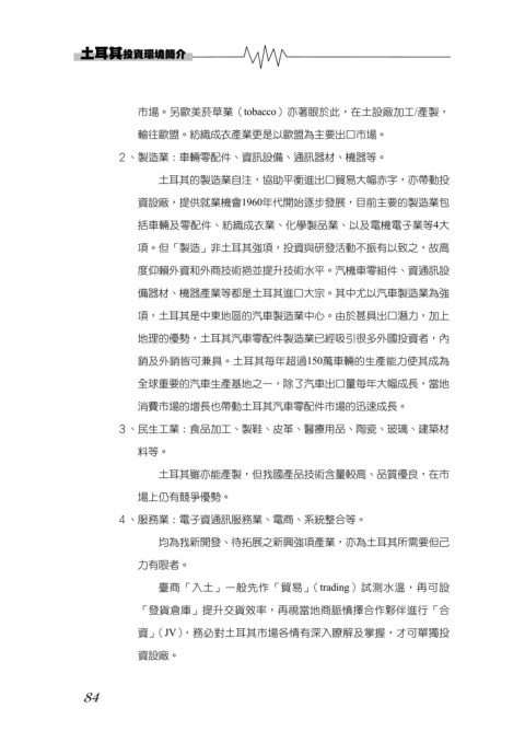 資」(JV),務必對土耳其市場各情有深入瞭解及掌握,才可單獨投