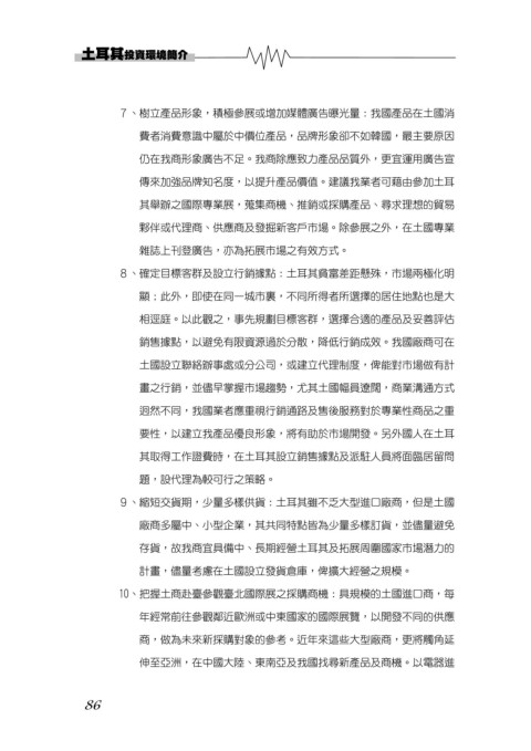 畫之行銷,並儘早掌握市場趨勢,尤其土國幅員遼闊,商業溝通方式