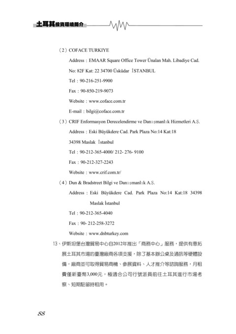 13、伊斯坦堡台灣貿易中心自2012年推出「商務中心」服務,提供有意拓