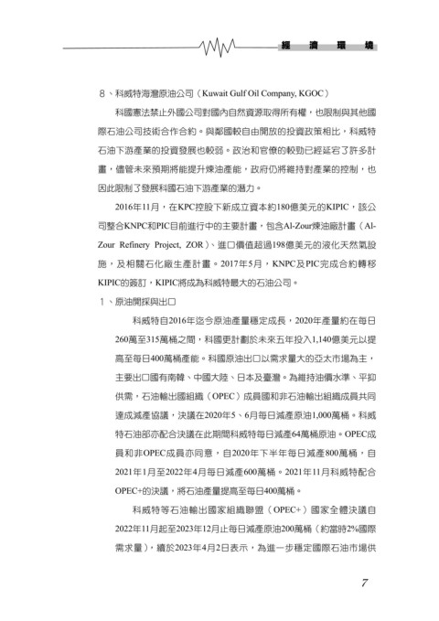 際石油公司技術合作合約。與鄰國較自由開放的投資政策相比,科威特