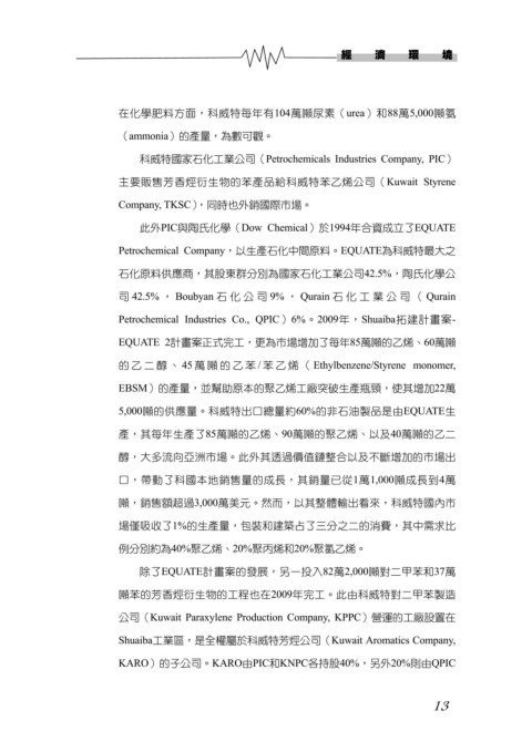 Petrochemical Company,以生產石化中間原料。EQUATE為科威特最大之