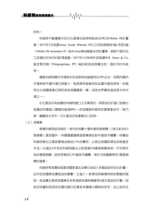 石化產品亦為我國自科威特進口之主要項目,與原油合計進口金額占