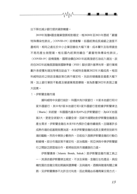 (Sharia)來經營,科國國內資本有45%在伊斯蘭銀行,為GCC地區
