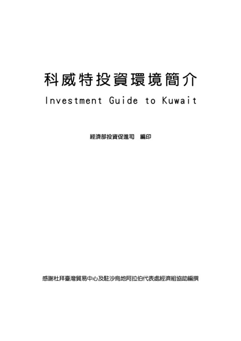 科威特投資環境簡介 Investment Guide to Kuwait 經濟部投資促進司 編印 感謝杜拜臺灣貿易中心及駐沙烏地阿拉伯代表處經濟組協助編撰
