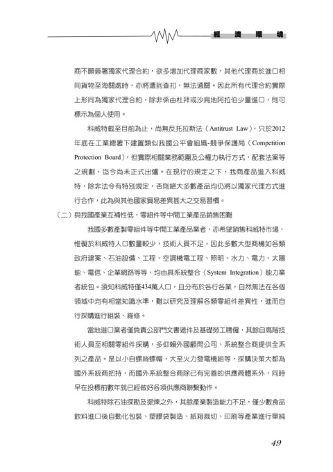 我國多數產製零組件等中間工業產品業者,亦希望銷售科威特市場,