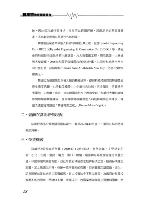 依據經濟部投資審議司資料顯示,截至2022年12月底止,臺商在科威特尚