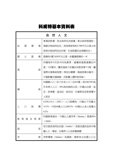 地 理 環 境 南鄰沙烏地阿拉伯,其西南部有約5,700平方公里土地