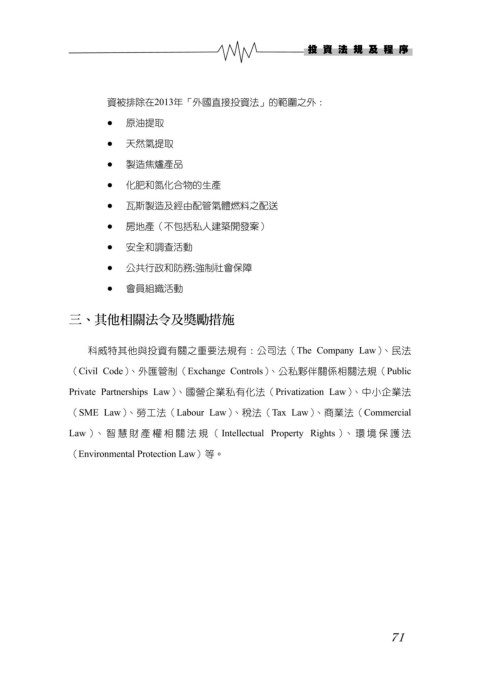 科威特其他與投資有關之重要法規有:公司法(The Company Law)、民法