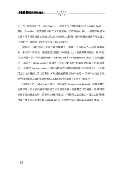 元),私部門(private sector)平均月薪為251科威特第納爾(約828美元)。公私部