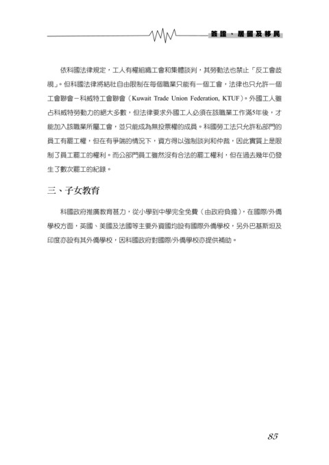 工會聯會-科威特工會聯會(Kuwait Trade Union Federation, KTUF)。外國工人雖