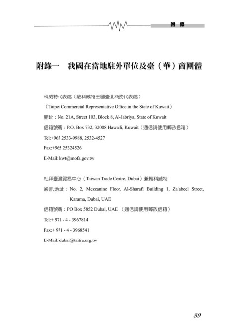 附錄一 我國在當地駐外單位及臺(華)商團體