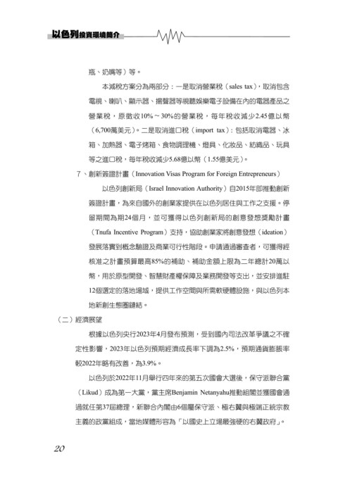 定性影響,2023年以色列預期經濟成長率下調為2.5%,預期通貨膨脹率