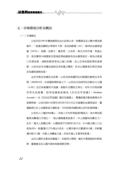 逐漸熱絡,以色列與UAE更於2022年5月31日正式簽署自由貿易協定,臺