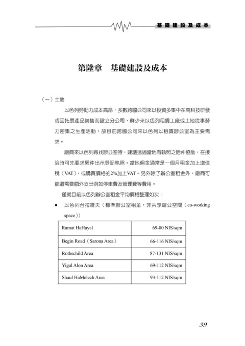 力密集之生產活動,故目前跨國公司來以色列以租賃辦公室為主要需