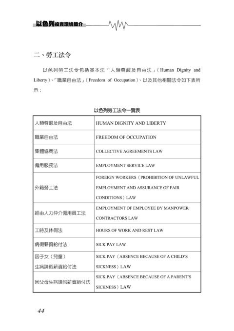 以色列勞工法令包括基本法「人類尊嚴及自由法」(Human Dignity and