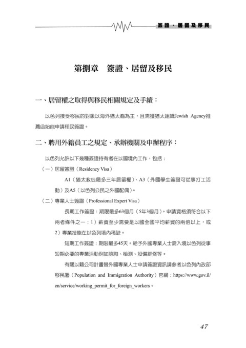 A1(猶太教徒最多三年居留權)、A3(外國學生簽證可從事打工活