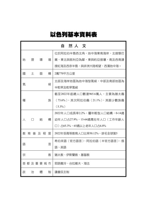 首都及重要城市 耶路撒冷、台拉維夫、海法